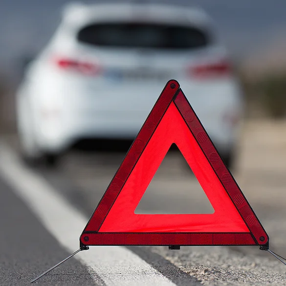 - A warning triangle, which you must place at a distance from your car if you break down or have an accident.