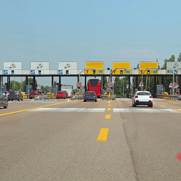 - Toll booths will be to your left.