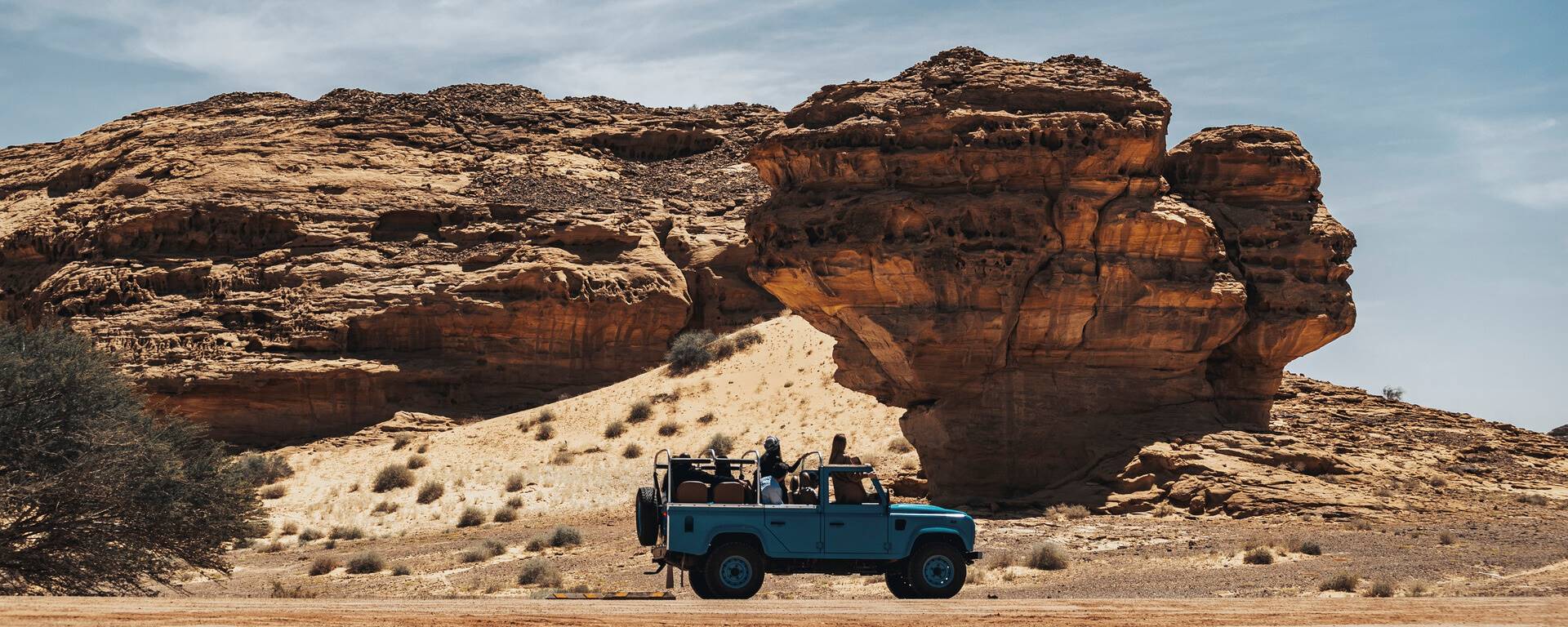 Swap city for sand today as you leave Al-Ula and drive four hours south to the sandy desert plains of Hejaz, where you’ll be staying for the next two nights.