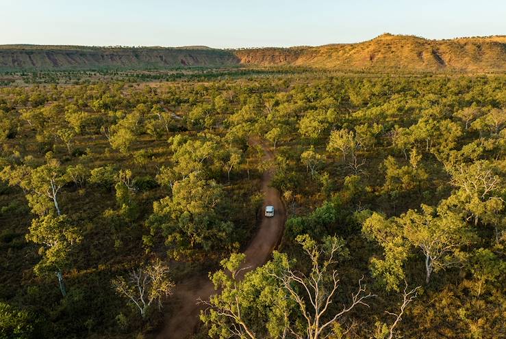Tired legs are in for a treat today – there’s plenty of time to rest on the five-hour drive to El Questro. Get set for a beautiful road-trip, crisscrossing the red desert landscapes, dotted with trees and the low vegetation of the Outback, with the rocky plateaus as a backdrop.
