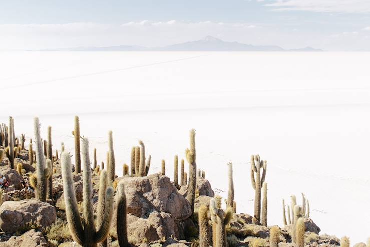 The salt flat is an ancient inland sea that’s even home to an island, Incahuasi Hill (House of the Inca), where giant columnar cacti break the abstract effect of the salt flat. It’s a place that truly feels like another world.