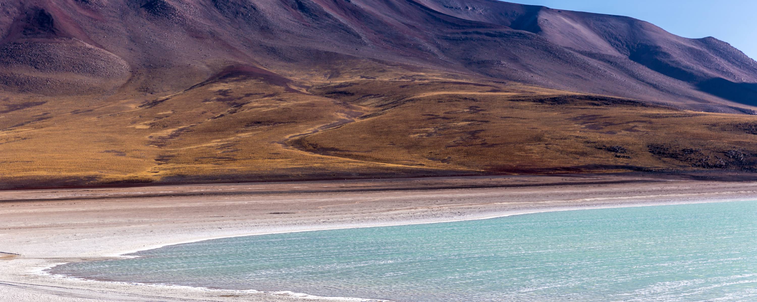 Marvel at the contrast between the white ground and the multicoloured hills before heading to the Piedras Rojas, not far from Paso de Sico, on the border with Argentina. This site is characterised by its vibrant red stones, thanks to the accumulation of iron oxide. En route, you'll also find the Miscanti and Miniques lagoons, where you might be lucky enough to spot flamingos, as well as vicunas, emus and foxes. Fancy exploring further? You have the option to take a private guided hike up Cerro Toco volcano – an accessible, high altitude hike offering unparalleled panoramic views.