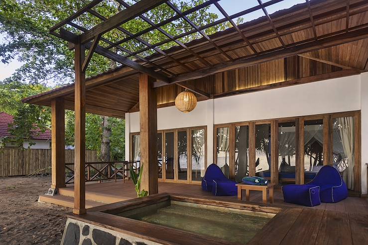Rise and shine. This morning, you’ll fly via Makassar to Manado. From there you’ll be privately transferred by car and speedboat to the tropical Siladen Island in Bunaken Marine Park, where you’ll stay for the next four nights. Swap the mountain air for the sea breeze as you arrive at your beachfront villa, surrounded by palm trees and turquoise waters.