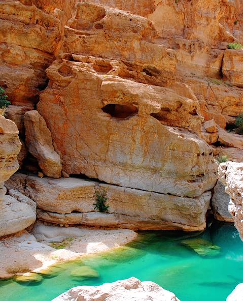 First, stop at Wadi Dayqah and Wadi Arbaeen for breathtaking views, winding trails and sprawling green spaces which are perfect for picnics. Next, continue on to Wadi Shab and Wadi Tiwi, two parallel wadis descending from the Eastern Hajar Mountains. Framed by ochre limestone cliffs, both ravines boast emerald waters and lush forests, making this one of the most scenic regions in the country. Swimsuits and walking boots at the ready: each spot is ideal for a hike or refreshing dip.