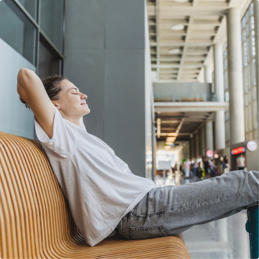 To start with, it’s important to give yourself plenty of time to settle in at the gate and find a comfortable seat. Then, you might try meditative breathing techniques to help relax your mind and body and better manage the natural ‘fight or flight’ response that we often feel during moments of panic.