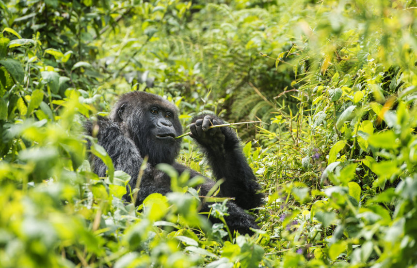 Gorillas don’t just share 98% of their DNA with humans; they also mirror aspects of our social structures. These impressive primates are known to live in family groups (called troops) ranging in size from five to 50, with a dominant silverback male and several females and their offspring. Like humans, they interact with a ‘dispersed extended family’ of aunts, grandparents and cousins, and even mirror early human tribes by interacting with groups of gorillas they aren’t related to. One of our safari specialists, Jamie, comments that the biological and social connection humans share with gorillas is something you can 'really feel when watching the youngsters interact with their family groups'.